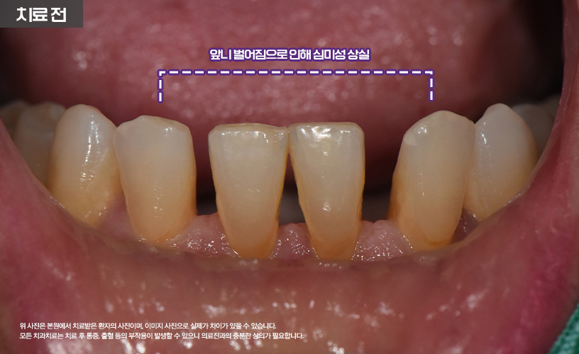 환자분의 경우 앞니 사이가 많이 벌어진 상태이기
