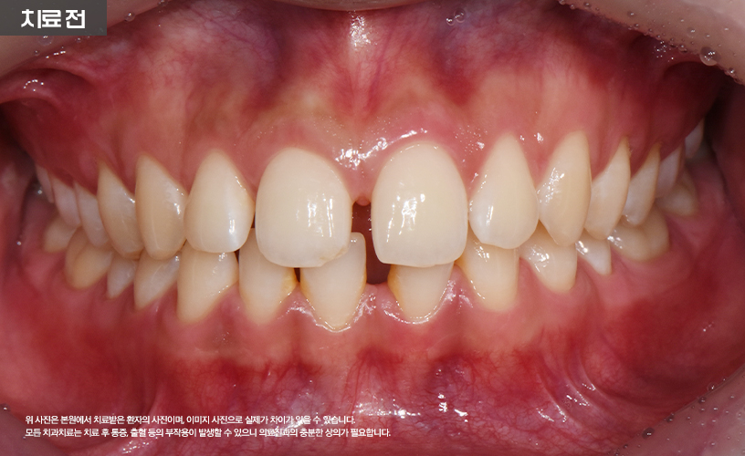 상기 환자분은 상, 하악 앞니 벌어짐으로 인해